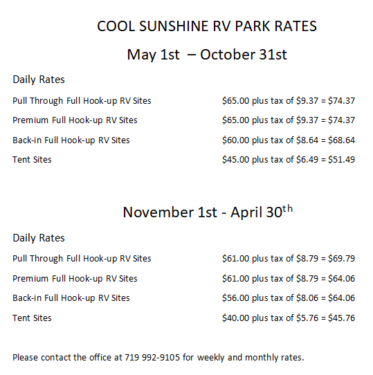 Cool Sunshine RV Park provides easy access to popular tourist destinations like The Great Sand Dunes National Park, Zapata Falls, SLV Museum, the Cumbres & Toltec Railroad, and so much more.